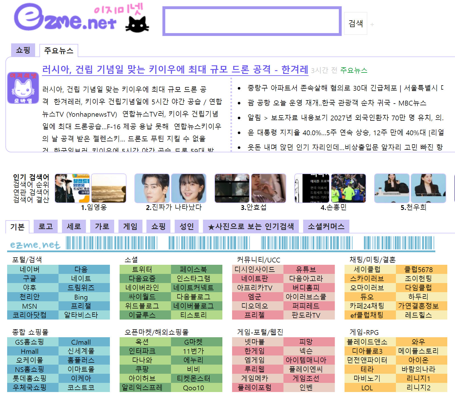 - 코멘트 : 인기검색어 영역이 매우 작고 각종 포털/엔터테인먼트 사이트 링크 바로가기를 걸어둔것이 특징이다.