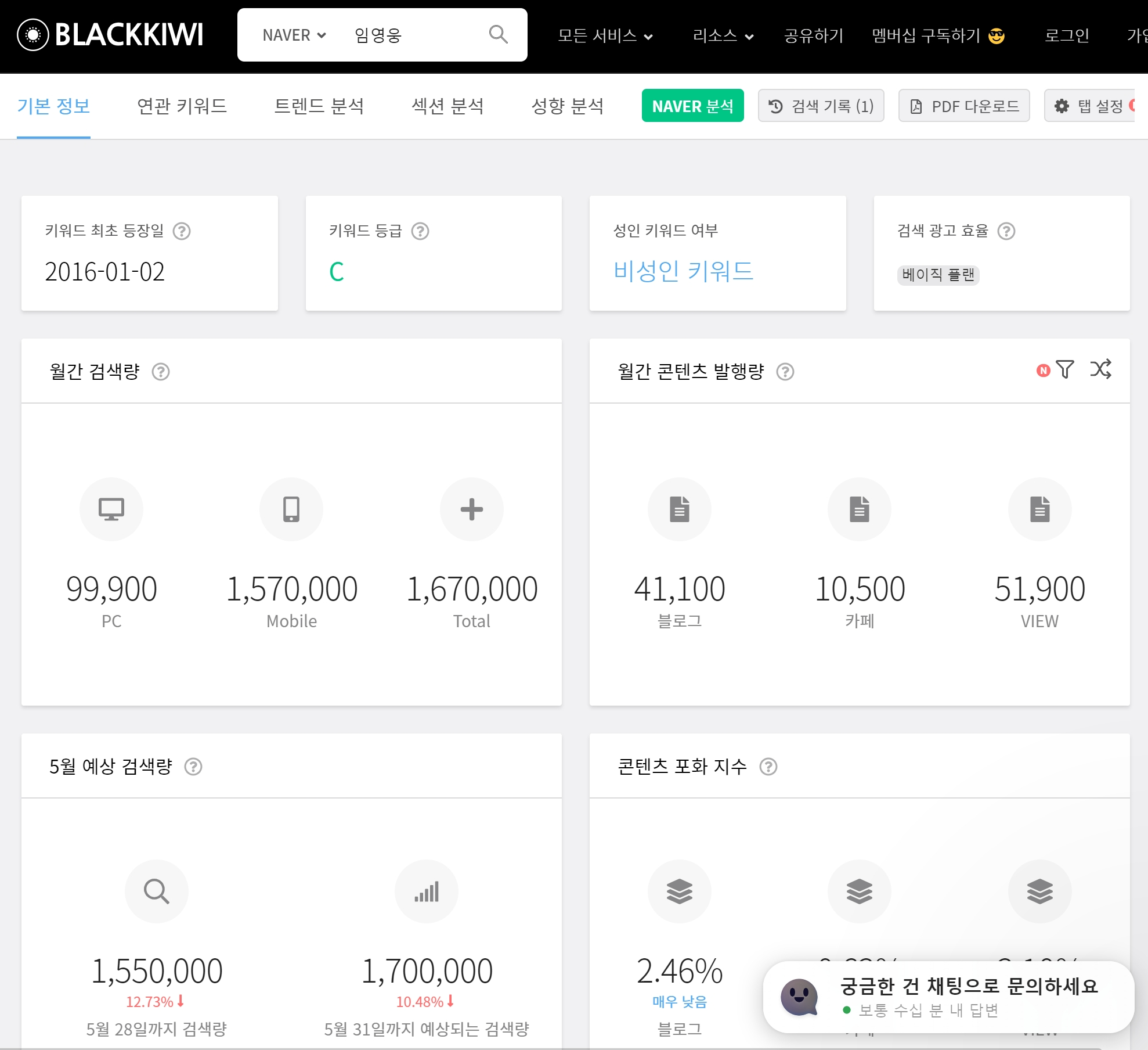 - 특징 : 키워드를 분석해주는 사이트. 내가 궁금한 키워드를 입력하면 분석해준다.