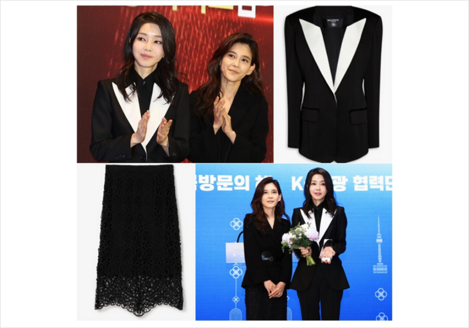 역시 멋쟁이는 블랙이다. 김건희는 400만 원대 발망 재킷, 200만 원대 버버리 스커트를 입었다고 한다.