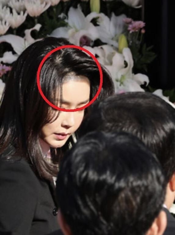 무속에 진심인탓에 이슈가 된 헤어라인. 헤어 쿠션으로 손질한 것으로 보인다.