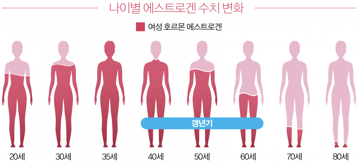 갱년기가 되면 이런 호르몬의 생성은 감소하고, 월경이 중단됩니다.