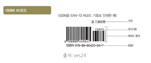 ISBN은 International Standard Book Number의 약자로 국제표준도서번호라고 하며, 국제적으로 표준화된 방법에 의해, 전 세계에서 생산되는 각종 도서에 부여하는 고유한 식별기호입니다.