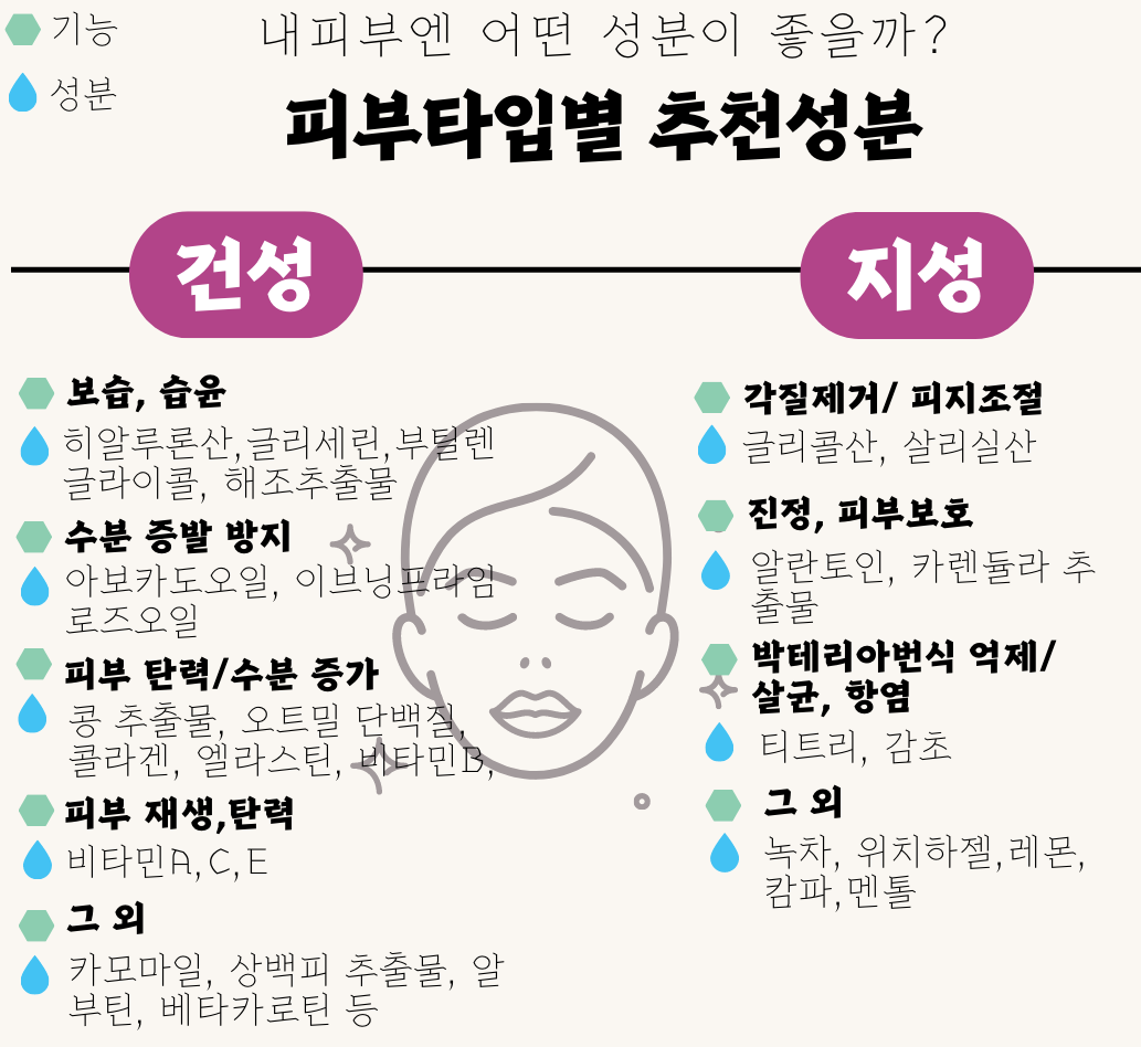- 화장품 살 때 자신의 피부 타입에 맞는 '성분'을 확인하세요.