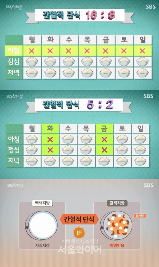 - 정상적으로 식사를 하다가 주기적으로 열량을 제한합니다. 생존 회로를 건드릴 만큼만 자극을 주는 방법입니다.
